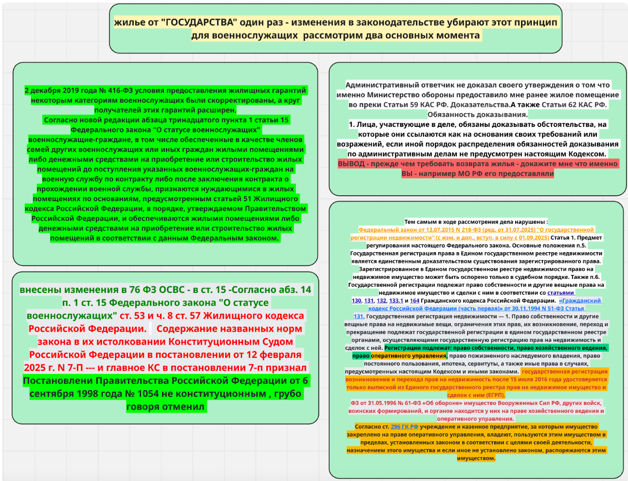 2. ФГАУ «Росжилкоплекс» филиал Южный в лице начальника Бгатова Сергея Александровича в своем формальном отказе , отказалось предоставить обьективные доказательства предоставления Мне Жилья ( на время прохождения службы) о чем прямо и написало мне ответ, в котором ответило, что никак не может подтвердить законность предоставления мне жилья от Министерства обороны Российской Федерации или уполномоченного органа. Тогда Рождается 2 вопроса По мнению ВЕРХОВНОГО СУДА РОССИЙСКОЙ ФЕДЕРАЦИИ В КАССАЦИОННОМ ОПРЕДЕЛЕНИ от 24 декабря 2018 г. N 33-КГ18-12: Действует «Специальное законодательство» на основании которого сделан отказ. То есть : По смыслу ст.59 и п. «т» ст. 71 Конституции Российской Федерации военная служба представляет собой особый вид федеральной государственной службы, что обуславливает и правовой статус военнослужащих, выражающийся в частности, в особом порядке реализации их конституционного права на жилище, которое осуществляется на основе, как общего, так и специального законодательства и по специальным пра вилам , «Согласно п. 14 ст. 15 Федерального закона «О статусе военнослужащих» в случае обеспечения федеральными органами исполнительной власти, в которых предусмотрена военная служба, жилым помещением военнослужащих-граждан, имеющих общую 5 продолжительность военной службы 10 лет и более, при увольнении с военной службы по состоянию здоровья и членов их семей при перемене места жительства документы о сдаче жилых помещений Министерству обороны РФ представляются указанными гражданами и совместно проживающими с ними членами их семей при получении жилого помещения по избранному месту жительства.», «Из анализа положений ст. 15 и 23 Федерального закона «О статусе военнослужащих» следует, что реализация права на жилье военнослужащих, заключивших контракт о прохождении военной службы до 1 января 1998 года, осуществляется путем предоставление за счет Министерства обороны Российской Федерации жилья для постоянного проживания в период военной службы (после пяти лет военной службы) с передачей этого жилья при увольнении в запас им в собственность или с условием его сдачи для последующего обеспечения жильем по избранному месту жительства. Предоставляя определенной в этих нормах Закона категории военнослужащих гарантии обеспечения жильем для постоянного проживания (в собственность бесплатно или по договору социального найма), названный Закон возлагает на Министерство обороны РФ обязанность по предоставлению им такого жилья только один раз за все время военной службы, что, в свою очередь, предполагает обязанность военнослужащего сдать выделенное ему по месту прохождения военной службы жилое помещение. Исключений из этого правила для военнослужащих, обеспеченных жильем для постоянного проживания в период прохождения военной службы, законом не предусмотрено. Из анализа вышеприведенных правовых норм следует, что если военнослужащий распорядился полученным ранее от Министерства обороны РФ по установленным нормам жилым помещением и не может его сдать в установленном порядке, то он не имеет права требовать повторного предоставления жилого помещения по договору социального найма в порядке, определенном ст. 15 Федерального закона «О статусе военнослужащих», даже по истечении срока, предусмотренного ст. 53 ЖК РФ.» Однако д