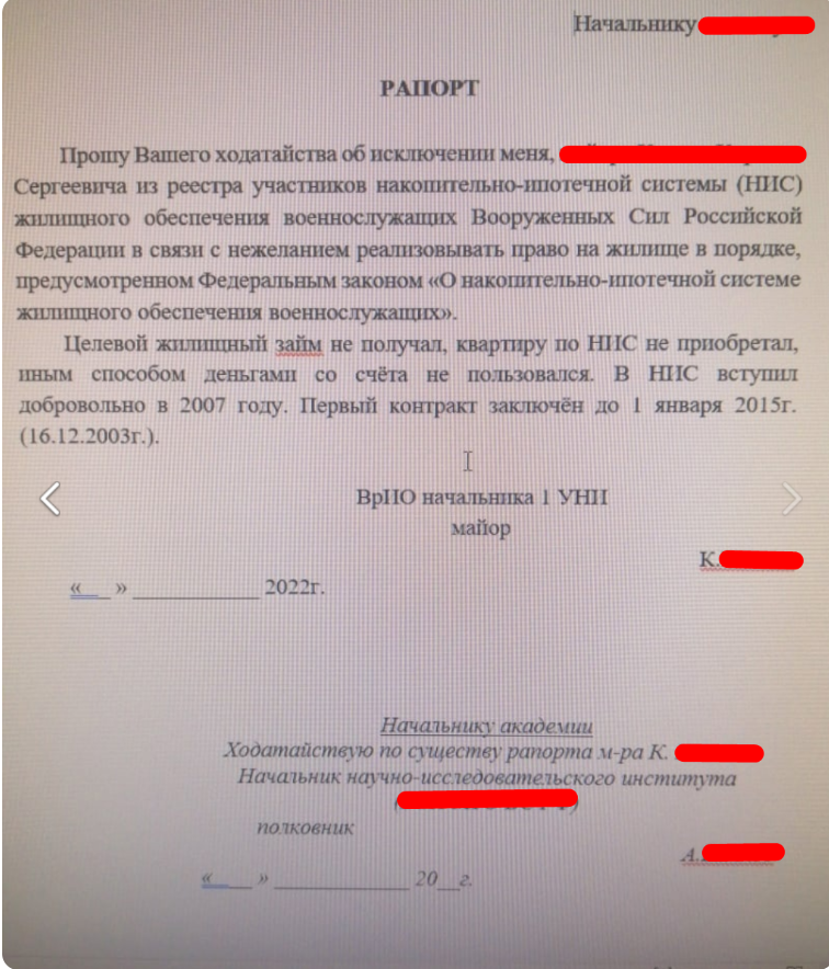 ⭐️В этой связи, военнослужащие, участвующие на добровольной основе в НИС имеют право выйти из нее по собственному желанию и выбрать другой вид жилищной гарантии, реализуемый посредством постановки на учет в качестве нуждающихся в жилых помещениях с момента подачи заявления о добровольном исключении из реестра участников накопительно-ипотечной системы.