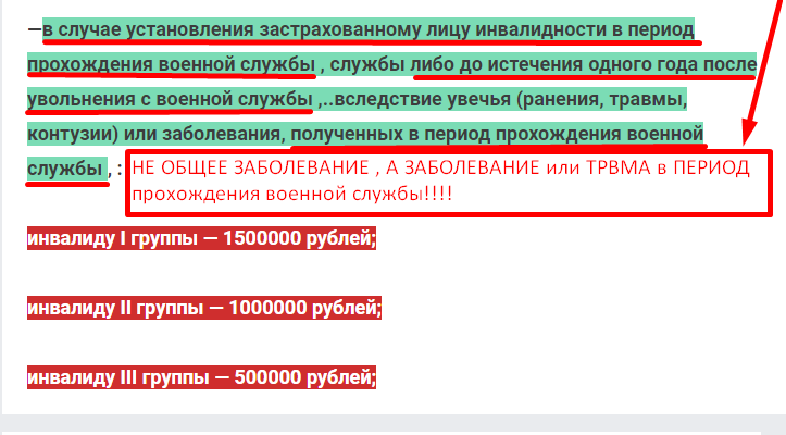 установление застрахованному лицу инвалидности до истечения одного года после увольнения с военной службы, со службы, после отчисления с военных сборов или окончания военных сборов вследствие увечья (ранения, травмы, контузии) или заболевания, полученных в период прохождения военной службы, службы, военных сборов;