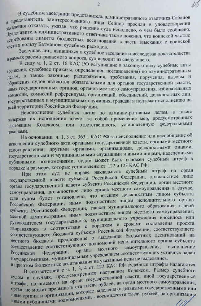 Таким образом, решение суда первой инстанции (от 26.03.2025) по существу не исполнено в той части, которая вам нужна, но формально командир отчитался. Это классическая ситуация "формального исполнения" или "исполнения в другой части". Командир использовал лазейку в судебном решении: поскольку суд не обязал его выплатить конкретную сумму, а лишь "рассмотреть повторно", он и ограничился "рассмотрением" и заявкой лимитов.