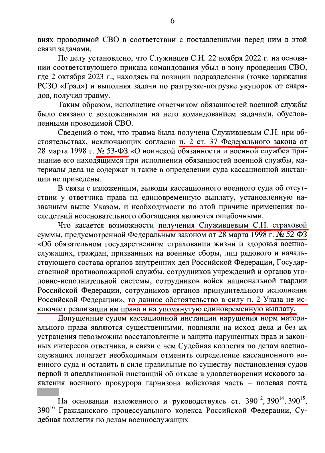 Кому: военнослужащим, получившим травму в зоне СВО, и их родственникам От кого: практика Судебной коллегии по делам военнослужащих Верховного Суда РФ