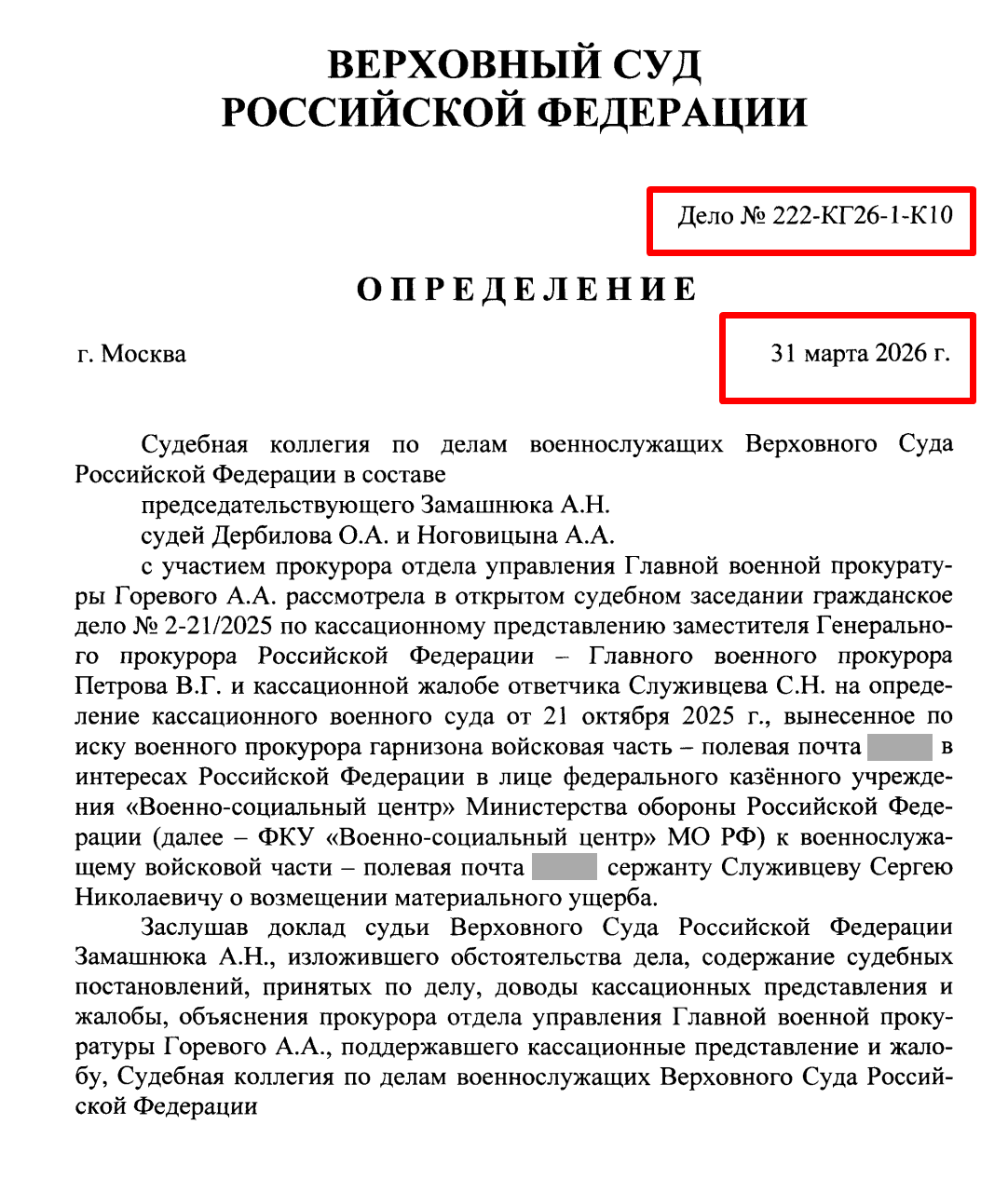 Определение ВС РФ № 222-КГ26-1-К10 от 31.03.2026