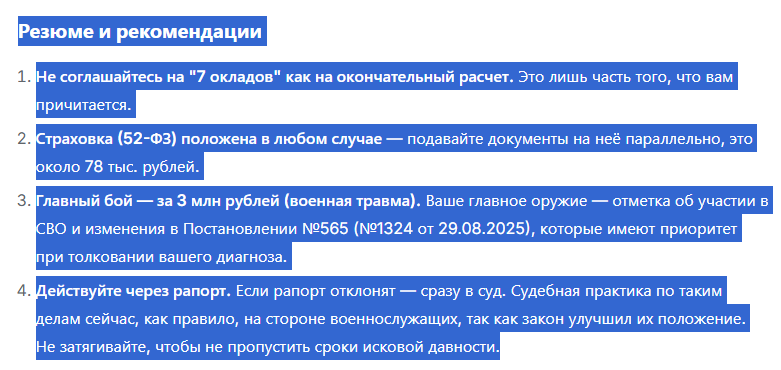Screenshot_2892p9nIolIUPS48nTS30YPiZQПенсия основыЮридическая поддержка военнослужащихДля подписчиков 0 0 0 184Screenshot_190p9nIolIUPS48nTS30YPiZQСтрахование Заполнение справок страхового случая. Увечье Инвалидность Военная травма. СВО отдельные выплаты 3 млн Юридическая поддержка военнослужащихДля подписчиков 0 0 0 327Screenshot_2731p9nIolIUPS48nTS30YPiZQКАКИЕ ПОЛОЖЕНЫ ВЫПЛАТЫ ВОЕННОСЛУЖАЩИМ ПРИ УВОЛЬНЕНИИ.Юридическая поддержка военнослужащихДля подписчиков 0 0 0 33Screenshot_1447p9nIolIUPS48nTS30YPiZQСамовольное оставление части ст 337 УК после 2022 г voenset.ru реальные сроки , СОЧ ( от первого иска до Верховного суда ) ДЕЛО ВОРОБЬЕВОЙЮридическая поддержка военнослужащихДля подписчиков 0 0 0 227Screenshot_838p9nIolIUPS48nTS30YPiZQдело Сабины - ВВК спина СОЧ увольнение суды рапорты жалобы рапорт на прохождение ввк перед увольнениемЮридическая поддержка военнослужащихДля подписчиков 1 0 0 318Screenshot_1377p9nIolIUPS48nTS30YPiZQСПИНА Расписание болезней 323 ФЗ жалобы на медиков на этапе лечения, расследование на примере ст 66 заболевания спиныЮридическая поддержка военнослужащихДля подписчиков 0 1 0 446Screenshot_762p9nIolIUPS48nTS30YPiZQЭпилепсия - допуск к оружию и Гостайне соподчиненность норм; юридическая сила последствия контузии , невротические расстройства , оформление инвалидности, дело АбдуллыЮридическая поддержка военнослужащихДля подписчиков 1 0 0 498Screenshot_994p9nIolIUPS48nTS30YPiZQВВК. Заболевание крови.ИИИ. Эл.маг излученияЮридическая поддержка военнослужащихДля подписчиков 0 0 0 125