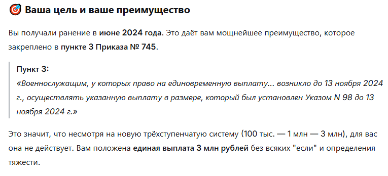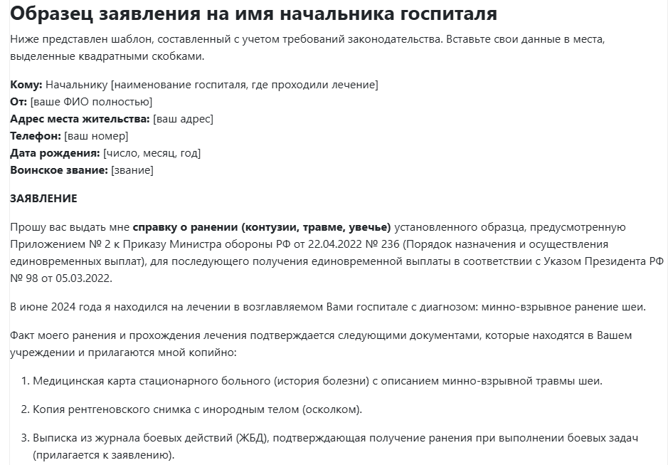 Screenshot_2804p9nIolIUPS48nTS30YPiZQПровести мероприятия по оформлению справки о ранении и определению степени тяжести моего увечья в соответствии с новым порядком (Приказ № 745).Юридическая поддержка военнослужащих 0 0 0 7Screenshot_2802p9nIolIUPS48nTS30YPiZQПрошу вас выдать мне справку о ранении (контузии, травме, увечье) установленного образца, предусмотренную Приложением № 2 к Приказу Министра обороны РФ от 22.04.2022 № 236 (Порядок назначения и осуществления единовременных выплат)Юридическая поддержка военнослужащих 0 0 0 6Screenshot_2794p9nIolIUPS48nTS30YPiZQНет ответа на рапорт особенности административного иска Юридическая поддержка военнослужащих 4 0 0 10Screenshot_2779p9nIolIUPS48nTS30YPiZQдополнительно к денежному довольствию (денежному содержанию) ежемесячную компенсационную выплату в размере 100 процентов пенсии за выслугу летЮридическая поддержка военнослужащих 11 0 0 9Screenshot_2776p9nIolIUPS48nTS30YPiZQвыплаты категория Д заболевание - однако до изменений в ППРФ 565 - т.е. в зоне СВО военная травма - выплаты разныеЮридическая поддержка военнослужащих 0 0 0 10Screenshot_2775p9nIolIUPS48nTS30YPiZQВыплата пенсии , плюс к ДД кому и как положена Юридическая поддержка военнослужащих 7 0 0 10Screenshot_2755p9nIolIUPS48nTS30YPiZQисполнение и ответственность за неисполнение решения СудаЮридическая поддержка военнослужащих 10 0 0 16Screenshot_2749p9nIolIUPS48nTS30YPiZQзаявление по вновь открывшимся , новым обстоятельствам -- Суд с ВВК Юридическая поддержка военнослужащих 2 0 0 19