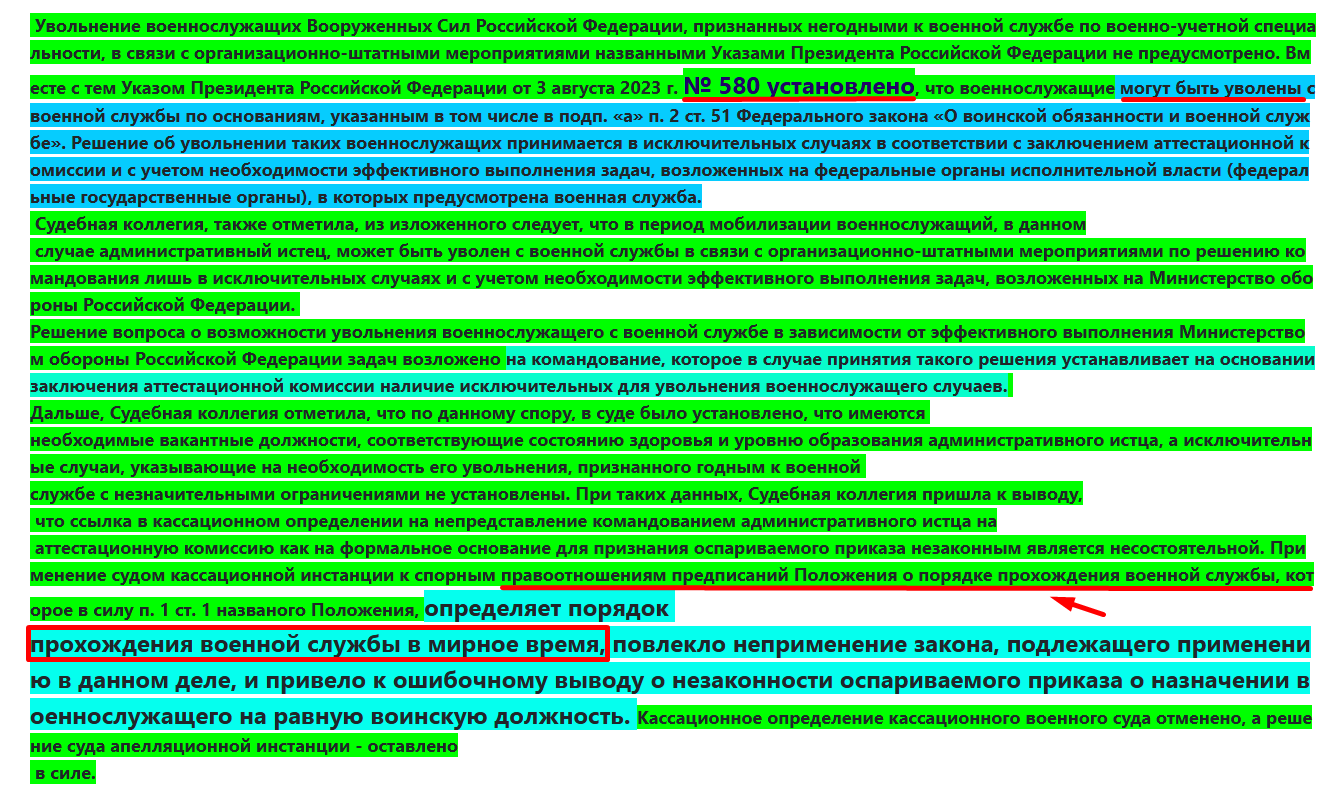 Суть спора. Военнослужащий оспаривал приказ о назначении на равную воинскую должность. Так как, заключением военно-летной комиссии признан негодным к летной работе, годным к военной службе с незначительными ограничениями. Отказался от предложенных высших, низших должностей. Подал рапорт об увольнении в связи с организационно-штатными мероприятиями. Но, назначен на равную воинскую должность инженера.