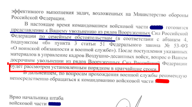 о досрочном увольнении меня с военной службы , по семейным обстоятельствам
