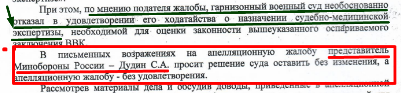 ставят под сомнение законность решения ВВК.